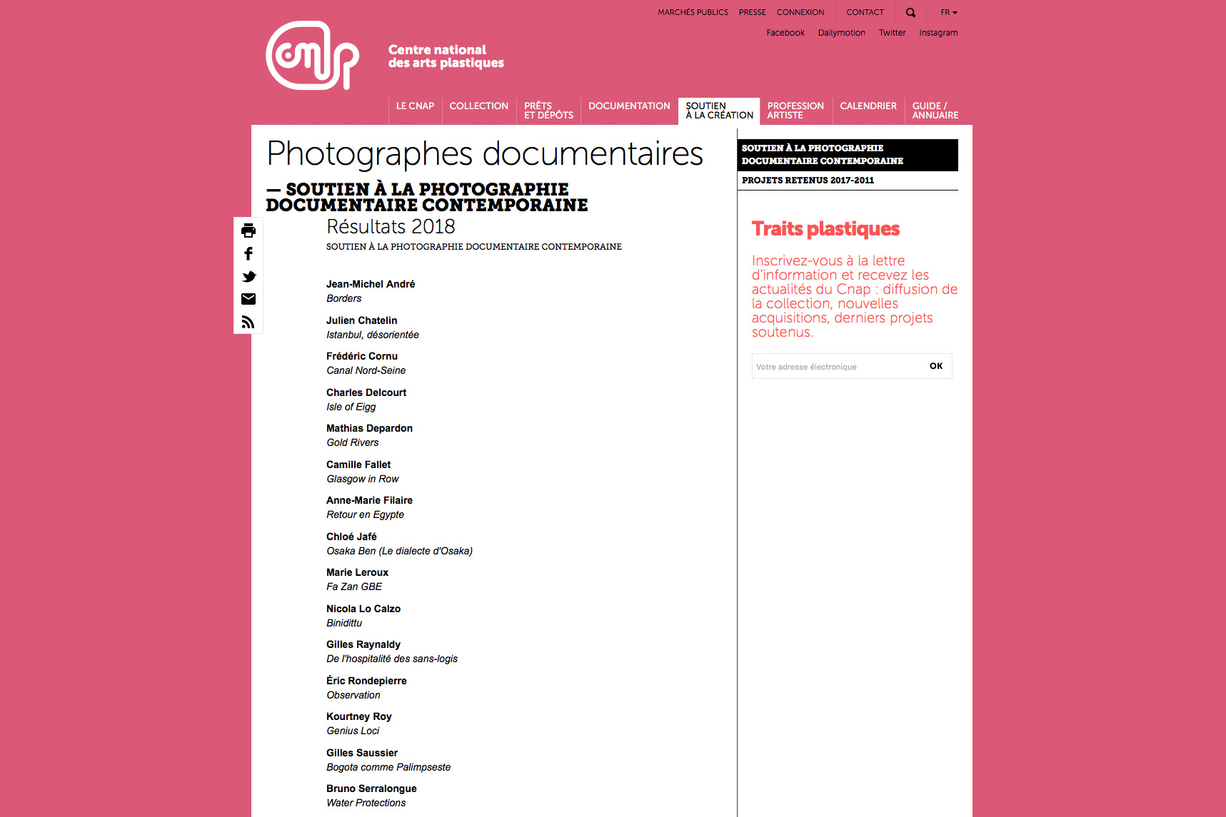 Récompensé par le prix du Jury de la Bourse du Talent 2017 - catégorie paysage -, Borders a été exposé à la Bibliothèque Nationale de France à Paris de décembre 2017 à mars 2018. Ce travail a également été présenté en avril 2018 à Bordeaux dans le cadre du Festival Itinéraire des photographes voyageurs et actuellement à Lille à la Maison de la photographie. En partie réalisé en Tunisie, Borders se poursuit : de nouvelles photographies sont présentées pour la première fois à l’Institut français de Tunisie. Ce travail s’enrichit également de la collaboration avec un écrivain, Wilfried N’Sondé.